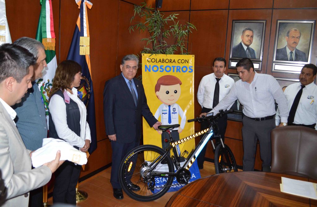 Personal de Vigilancia de la UA de C recibió de manos de las autoridades universitarias uniformes para los 90 elementos que resguardan los diferentes campus de la Universidad, así como 13 Electrobikes “Cross” para los recorridos dentro de los campus y cámaras de vigilancia con un valor superior al millón de pesos.