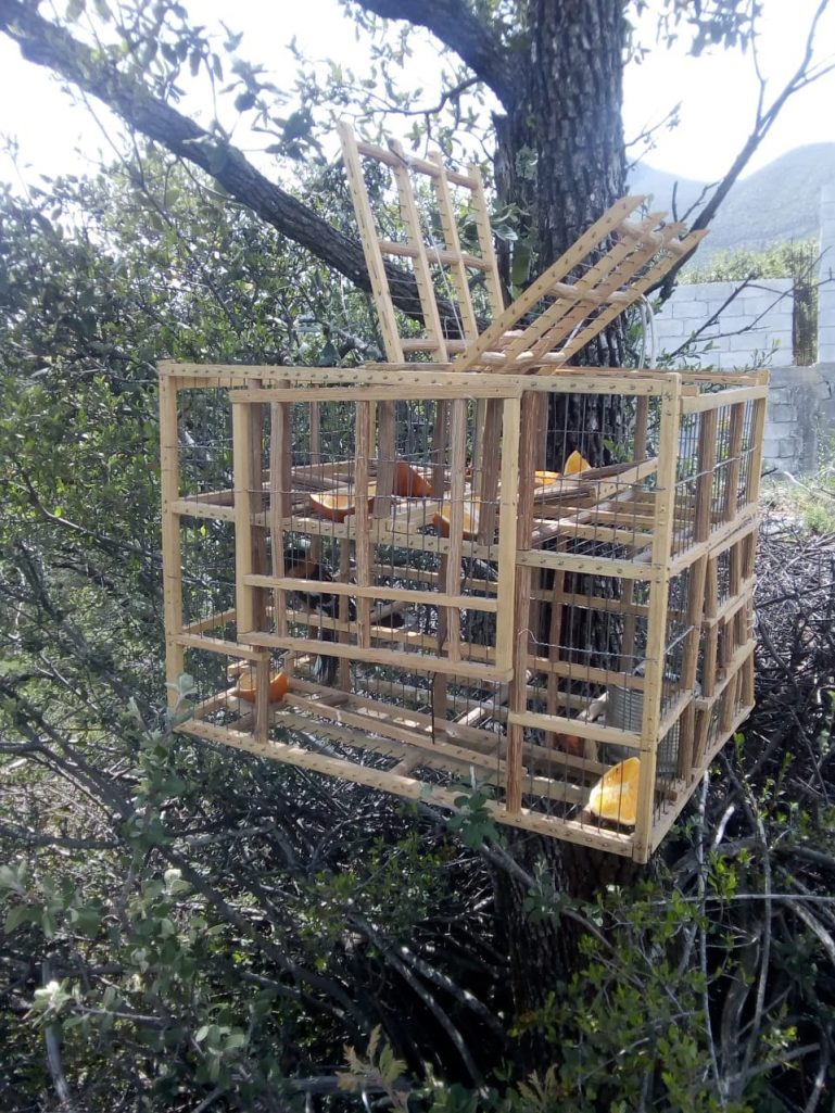 Cuando recorrían las calles más altas del sector Lomas de Lourdes, los elementos detectaron algunas trampas de madera tipo jaula, con las que se atrapan aves canoras.