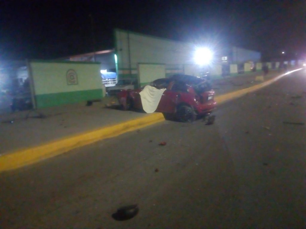 Al salir de una curva perdió el control impactándose de lleno contra una base de concreto y posteriormente dar varias volteretas entre las que se salió el motor, para finalmente chocar contra la barda del Mercado de Abastos.
