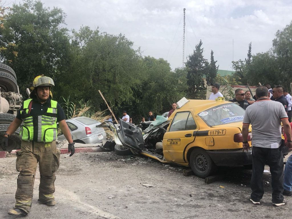 El camión derrapó al circular por la pronunciada pendiente por lo que cayó encima de un taxi tipo Tsuru, del cual el chofer se salvó de morir aplastado.