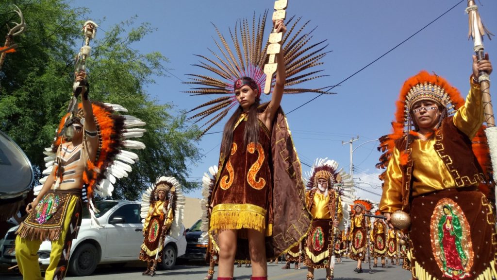 Desde las tres de la tarde aproximadamente, los danzantes comenzaron a congregarse frente al templo del Ojo de Agua, y hacia el sur por la calle Libertad, donde podían apreciarse por varias cuadras hacia arriba los coloridos penachos de los ejecutantes de esta tradicional actividad, que conjunta la devoción católica con los rituales prehispánicos.