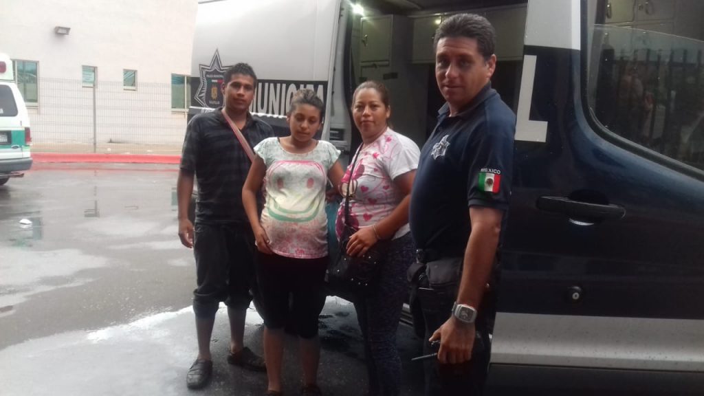 Solicitaron ayuda al oficial para trasladarlos al Hospital General, ya que la mujer embarazada tenía contracciones cada vez más frecuentes, pero debido a los encharcamientos ocasionados por las fuertes lluvias el automóvil que la trasladaba no podía continuar su marcha.