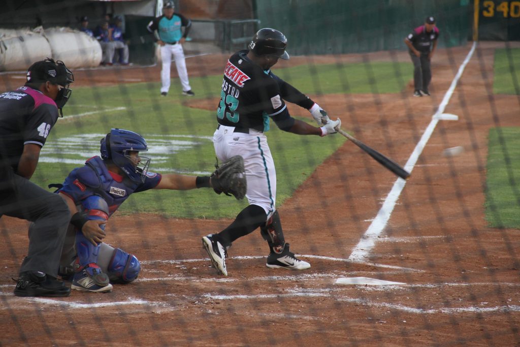 Leandro Castro recibe golpe, avanza a segunda en wild pitch del relevista Lenix Osuna y es puesto out en home tras doble de Manny Orozco, que termina timbrando con wild pitch.