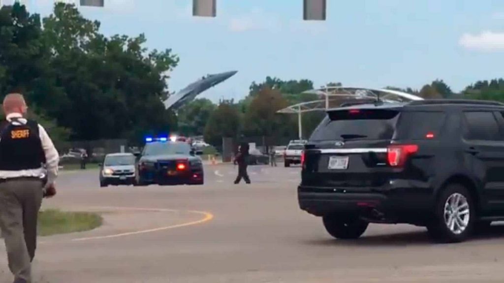 La policía local desviaba el tráfico lejos de la base, que es el empleador más grande de Ohio en una sola ubicación, con más de 27,000 empleados civiles y personal militar.