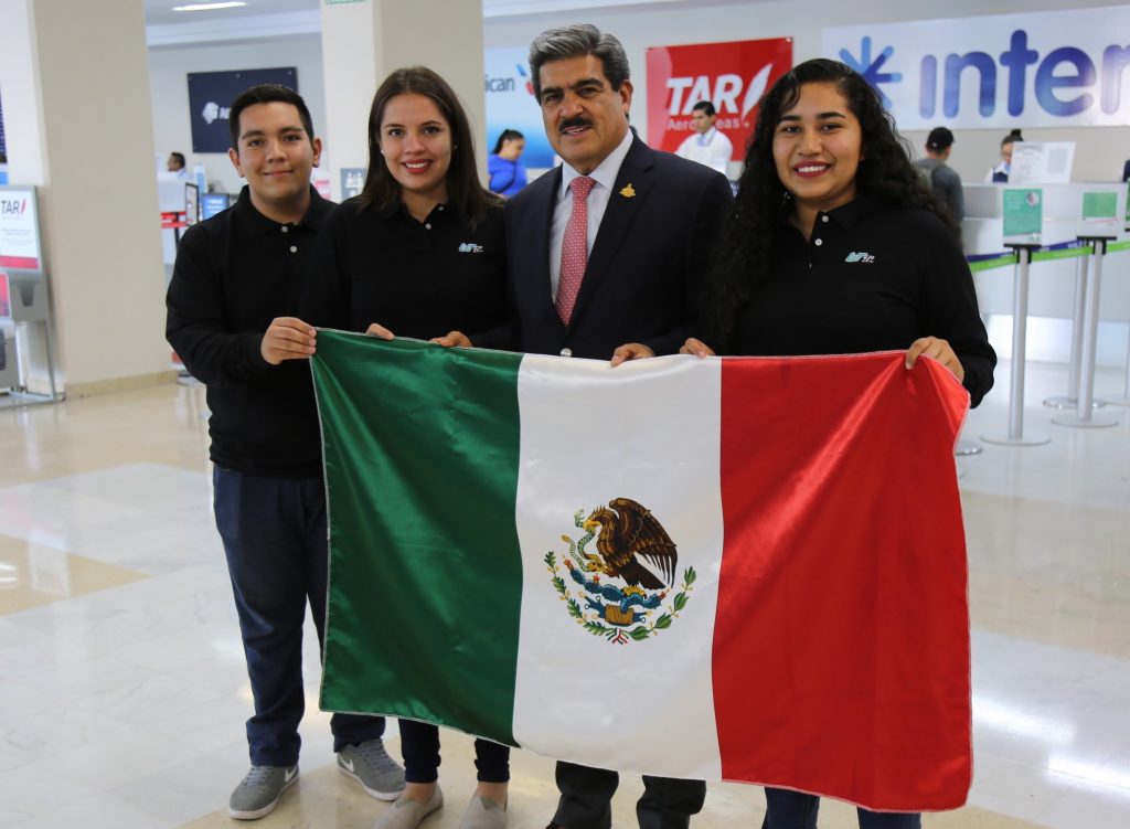 En el Aeropuerto Internacional de Torreón ‘Francisco Sarabia’, el rector Raúl Martínez Hernández acompañó a los tres alumnos y sus familias, donde les deseó un buen viaje y los exhortó a que aprovechen esta gran oportunidad que se les brinda de estudiar en el extranjero.