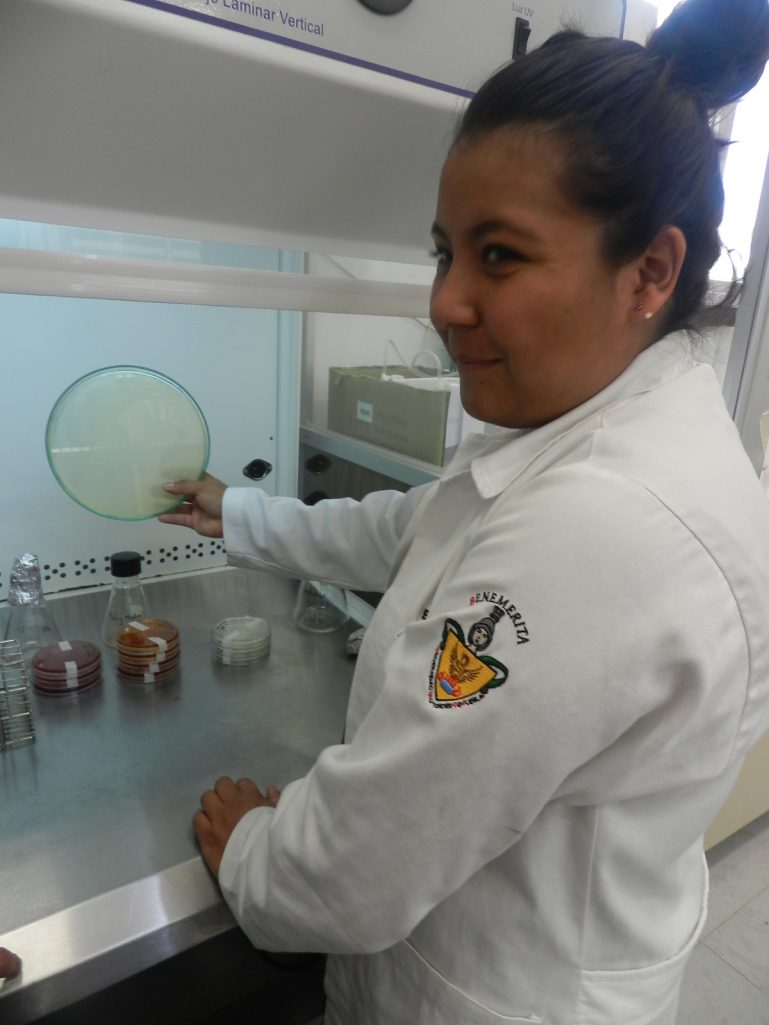 Como parte previa de este trabajo, la doctora y su equipo de estudiantes obtuvieron muestras de efluentes provenientes de corredores de los parques industriales Puebla 2000, Resurrección y Finsa, aislando 76 cepas diferentes, con las que simularon condiciones de crecimiento, añadiendo tres tipos de colorantes y solventes como mecanismo de alimentación.