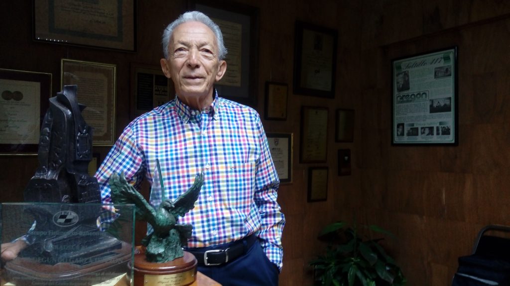 “Íbamos a caminar al campo y vuela un pajarito que conocemos con el nombre común de mosquero cardenalito y es un mosquerito rojo de color muy encendido, tiene un antifaz negro y tiene la peculiaridad de que se posa en las puntas de un arbusto y se suspende un momento en el aire, se ve como una llamita. A esa edad, viendo eso, me quedé embelesado y recuerdo que le dije a papá: ‘Déjame pescarlo porque quiero que lo vean mi mamá y mis hermanas’, me dijo: ‘No lo vas a poder atrapar’ y claro que nunca me lo pude llevar”, narró Aldegundo Garza en su oficina rodeada de su pasión por las aves.