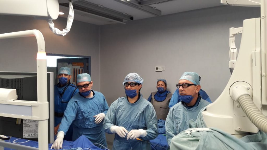 “Usualmente cuando identificamos obstrucciones en las arterias trabajamos con métodos convencionales como pasar una guía, luego un balón y al final colocar una endoprótesis que se llama “stent”, sin embargo, tenemos casos de pacientes que cuando les hacemos el cateterismo las arterias están ocluidas por más de tres meses y ahí no podemos realizar el método convencional sino que necesitamos más tecnología”, detalló.