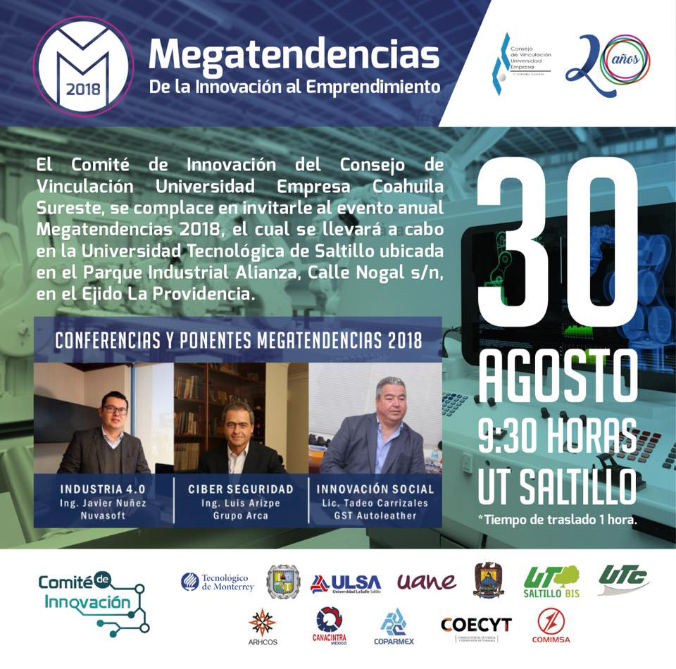 El evento se efectuará a las 9:30 de la mañana en las instalaciones de la Universidad Tecnológica de Saltillo, también participarán otras universidades como el Tecnológico de Monterrey, UANE, ULSA, UTC, centros de investigación, COECYT, COMIMSA y cámaras empresariales como CANACINTRA, COPARMEX y ARHCOS.