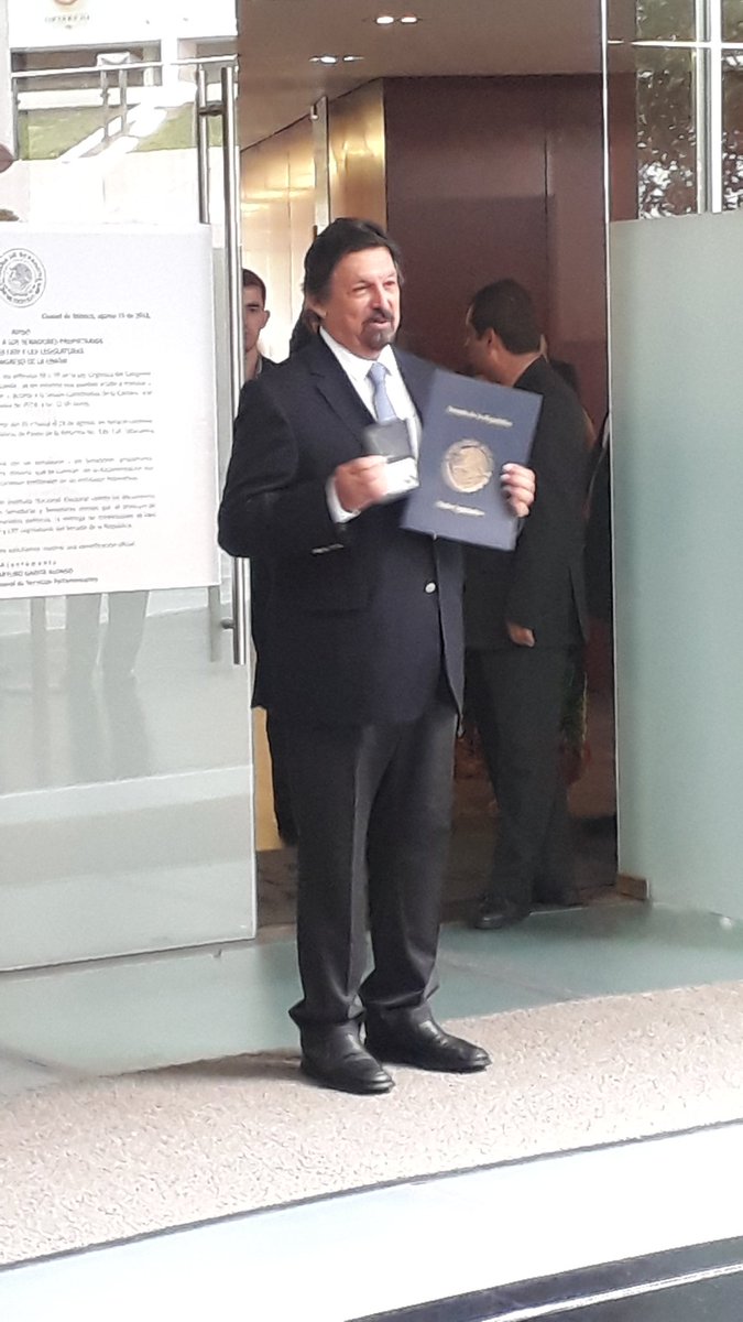 Gómez Urrutia llegó a la sala de apoyo a senadores para recibir su credencial de identificación y acceso a este recinto la tarde de este lunes, tras un exilio en el que se mantuvo en Canadá debido a una investigación por el presunto delito de desvío de 55 millones de dólares de un fideicomiso de trabajadores mineros, publicó El Sol de México.