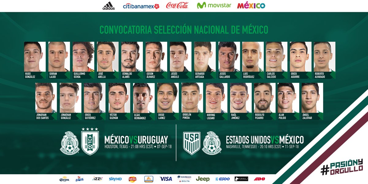El estratega interino de la Selección Mexicana de Futbol, Ricardo Tuca Ferretti, entregó la lista de convocados para enfrentar en partidos amistosos a sus similares de Uruguay y Estados Unidos los días 7 y 11 de septiembre, en Houston y Nashville, respectivamente.