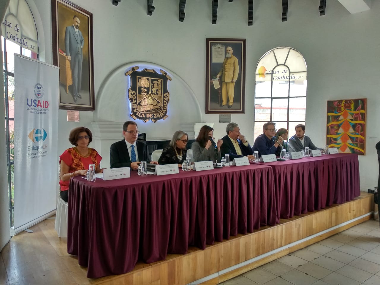 En la presentación en la Capital del País –encabezada por el Secretario de Gobierno de Estado, José María Fraustro Siller, y Luis Efrén Ríos Vega, Director General de la Academia Interamericana de Derechos Humanos (AIDH) de la Universidad Autónoma de Coahuila– Yolanda Morán, representante de FUUNDEC-FUNDEM, destacó que colectivos de otros 20 estados se han acercado para conocer el modelo de nuestra entidad.