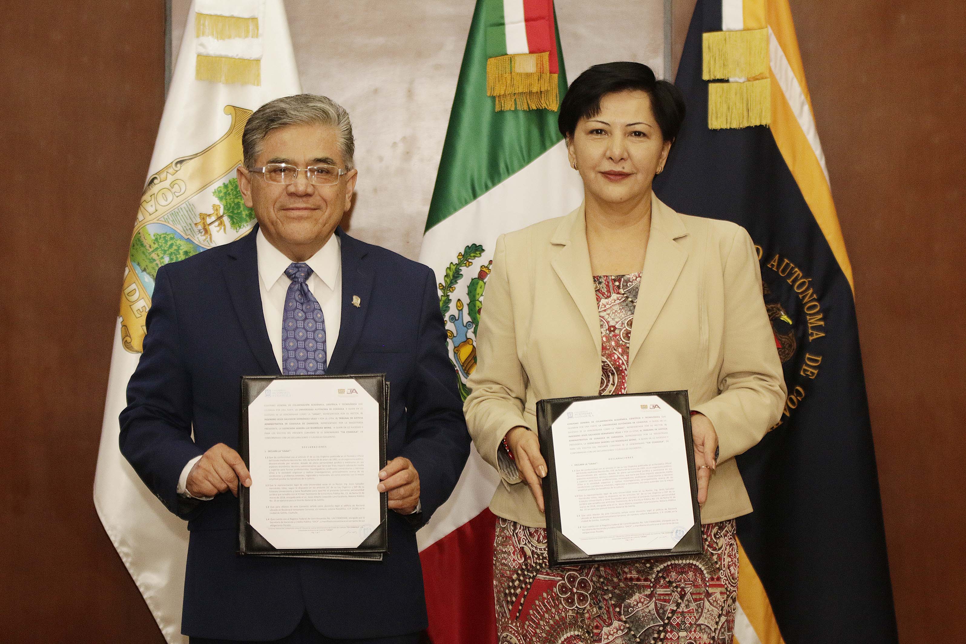 Signaron el documento la Magistrada Presidenta del Tribunal de Justicia Administrativa, Sandra Rodríguez Wong, y el rector de la UA de C, Salvador Hernández Vélez. (EL HERALDO)