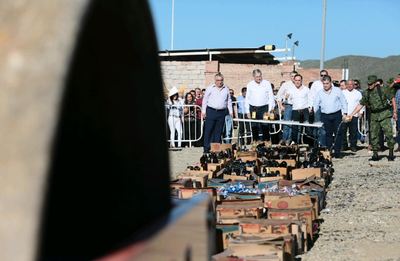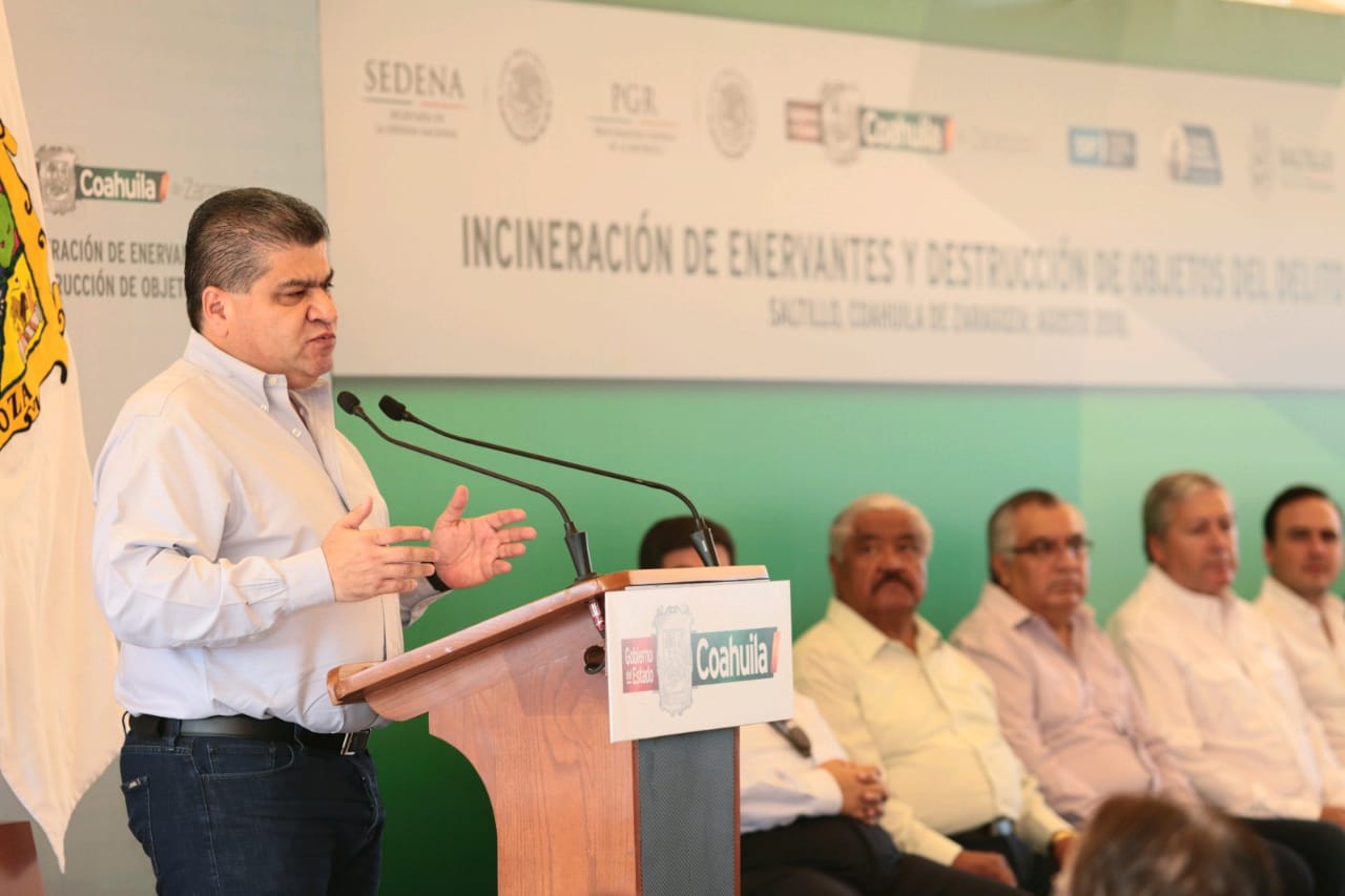 Agregó que hoy bajo un protocolo de seguridad y un esquema de total transparencia, tiene lugar la destrucción de las sustancias y objetos que fueron asegurados en nuestro estado a diversos grupos criminales, producto de las estrategias permanentes de seguridad implementadas por el Gobernador Miguel Ángel Riquelme Solís, mismas que demuestran el trabajo constante en este tema.