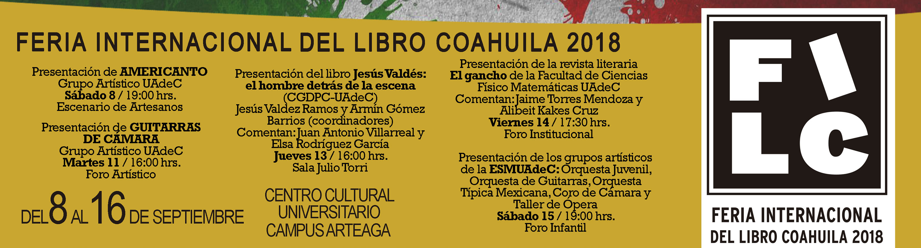 Del 8 al 16 de septiembre, el Centro Cultural Universitario Campus Arteaga, será sede de la Feria Internacional del Libro Coahuila 2018 y escenario de distintas actividades de la máxima casa de estudios.