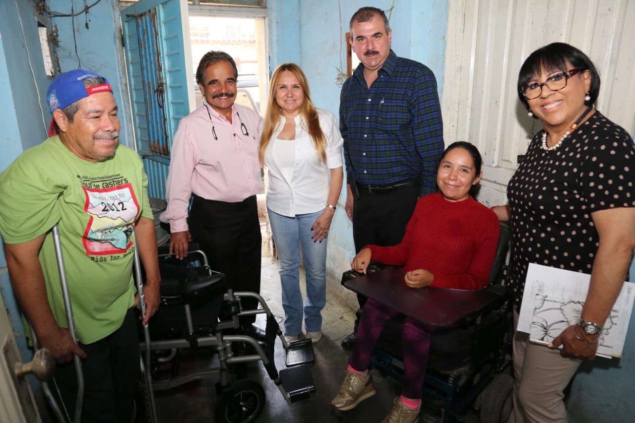 Torreón.- En su domicilio, integrantes de la familia Moreno Saucedo recibieron cuatro sillas de ruedas eléctricas de manos de la Presidenta Honoraria del DIF Coahuila, Marcela Gorgón, en un trabajo conjunto con el Patronato de la Beneficencia Pública de Coahuila, que dirige Latiffe Burciaga Neme.