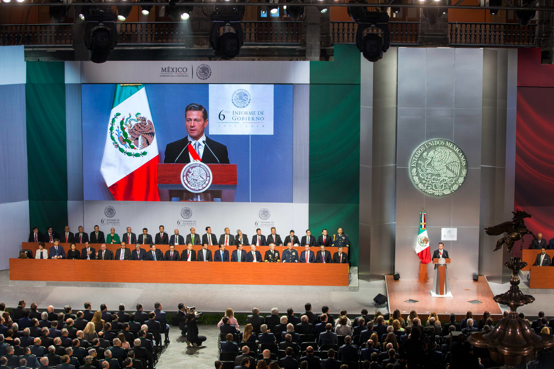 El presidente Enrique Peña Nieto dio este lunes su mensaje con motivo del sexto informe de Gobierno, en el que defendió su mandato y admitió fracasos, como en el tema de seguridad.