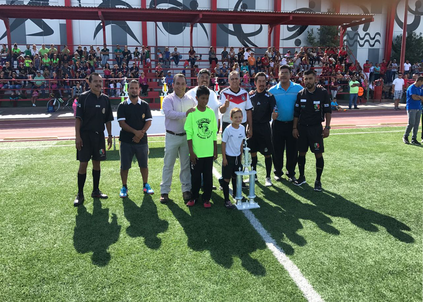 El pasado fin de semana, la dirección de deportes del municipio a cargo de Arturo Ramírez Lira y Francisco Solís Rodríguez, hizo entrega de los trofeos a los campeones de las distintas categorías de la liga municipal, en la Unidad deportiva de Ramos Arizpe