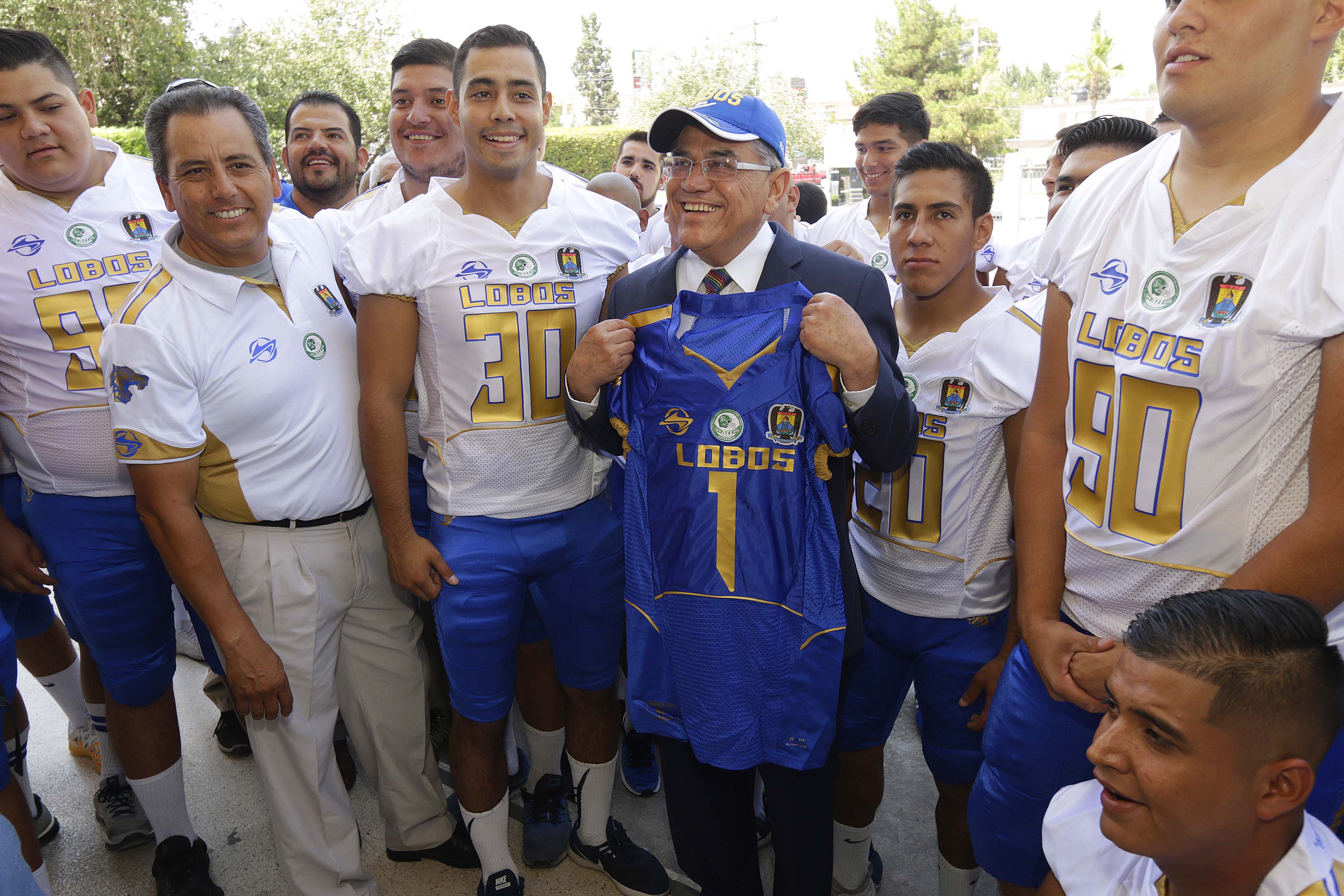 Con la toma de la tradicional fotografía oficial del equipo de Lobos liga mayor de futbol americano con el rector de la Universidad Autónoma de Coahuila, Salvador Hernández Vélez, dieron inicio las actividades previas al juego inaugural de la temporada.