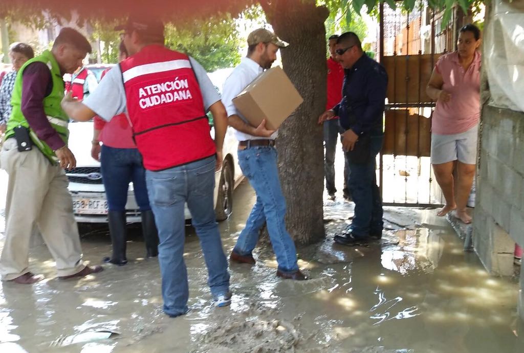 Los servidores públicos recorrieron las colonias Hacienda, El Edén y Argentinas,  donde evaluaron los daños e hicieron entrega de despensas, artículos de limpieza y alimentos destinados a cerca de 10 mil personas en 2 mil 500 viviendas.