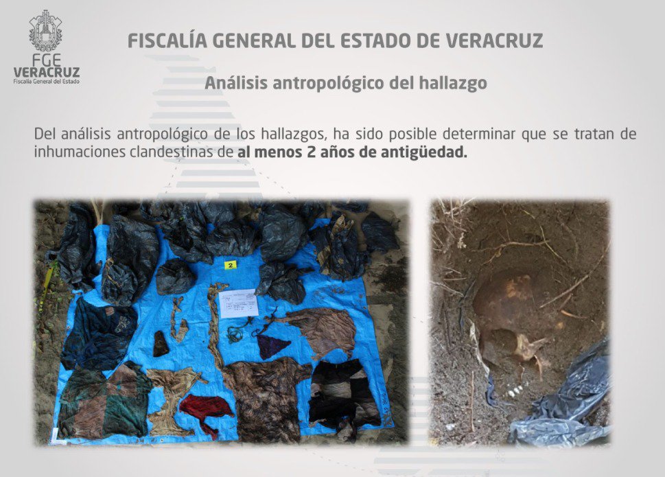 La Fiscalía de Veracruz informó que se hallaron 166 cuerpos humanos en fosas clandestinas ubicadas en el centro del estado.