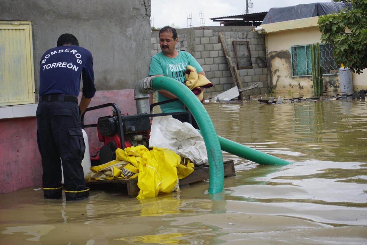 Protección Civil Estatal trabaja con 10 bombas de gran capacidad en colonias de Torreón