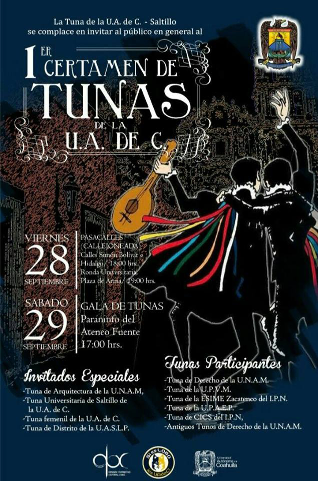 Con el objetivo de difundir la calidad artística de las Tunas Universitarias del país, la Universidad Autónoma de Coahuila llevará a cabo su Primer Certamen Nacional de Tunas, que se realizará los días 28 y 29 de septiembre.