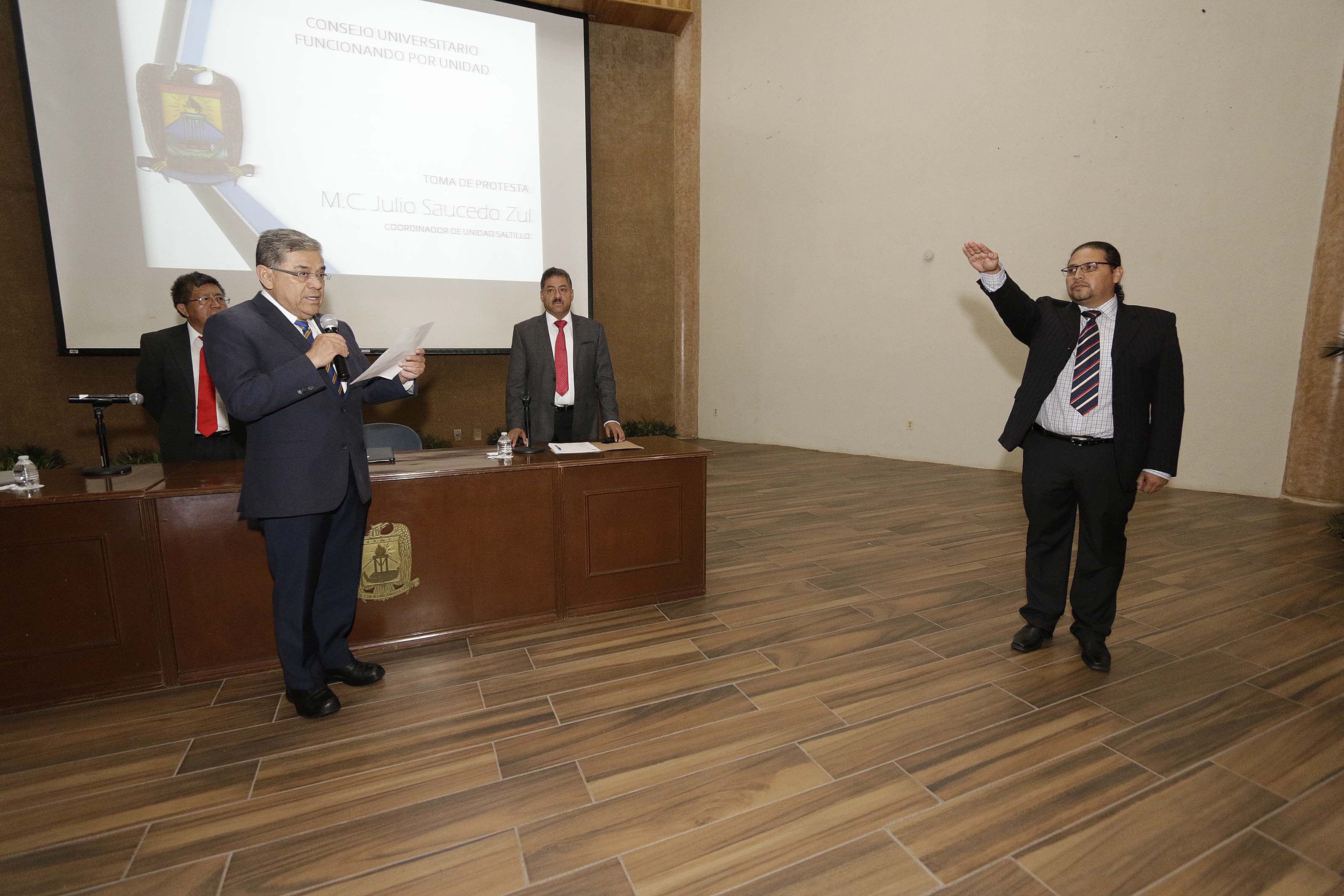 Con el compromiso de servir a la comunidad estudiantil y cumplir con las expectativas de los estudiantes, Julio Saucedo Zul, rindió protesta como el nuevo Coordinador de la Unidad Saltillo de la Universidad Autónoma de Coahuila para el periodo 2018-2021.