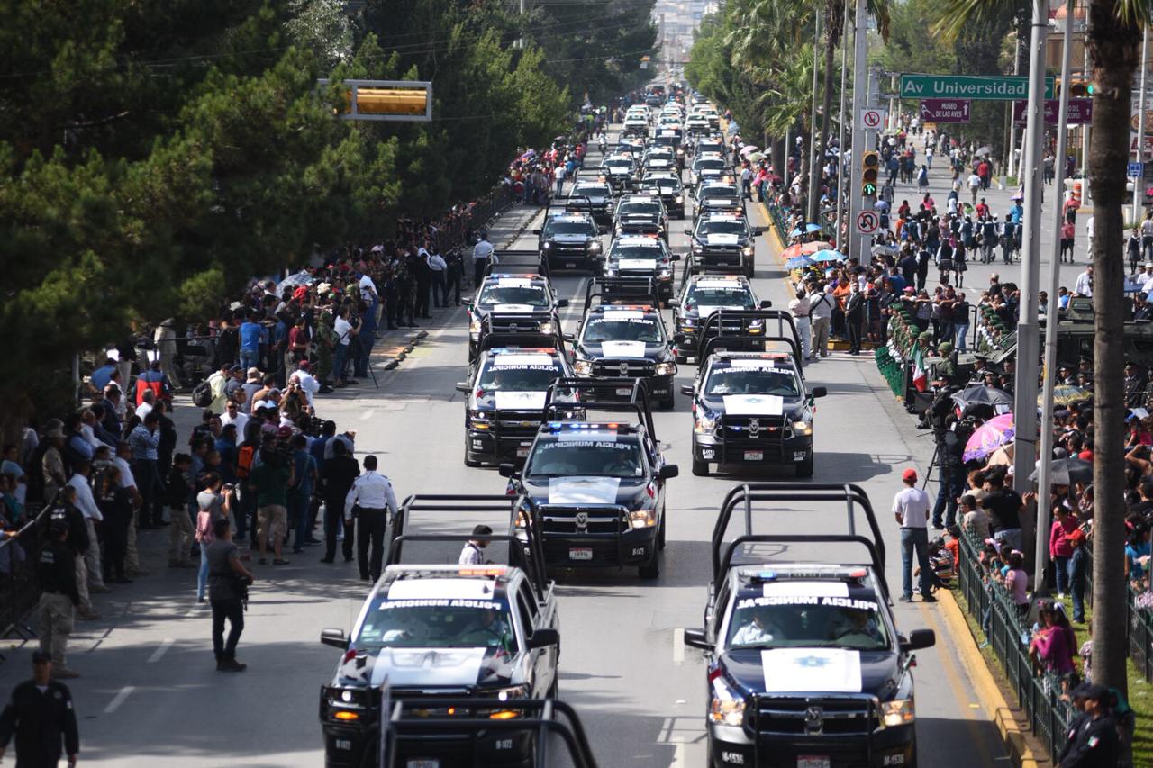 Además de su participación como miembros del desfile, los elementos policiacos también brindaron servicio a la población que se reunió en el bulevar Venustiano Carranza para disfrutar del desfile cívico militar. (EL HERALDO)