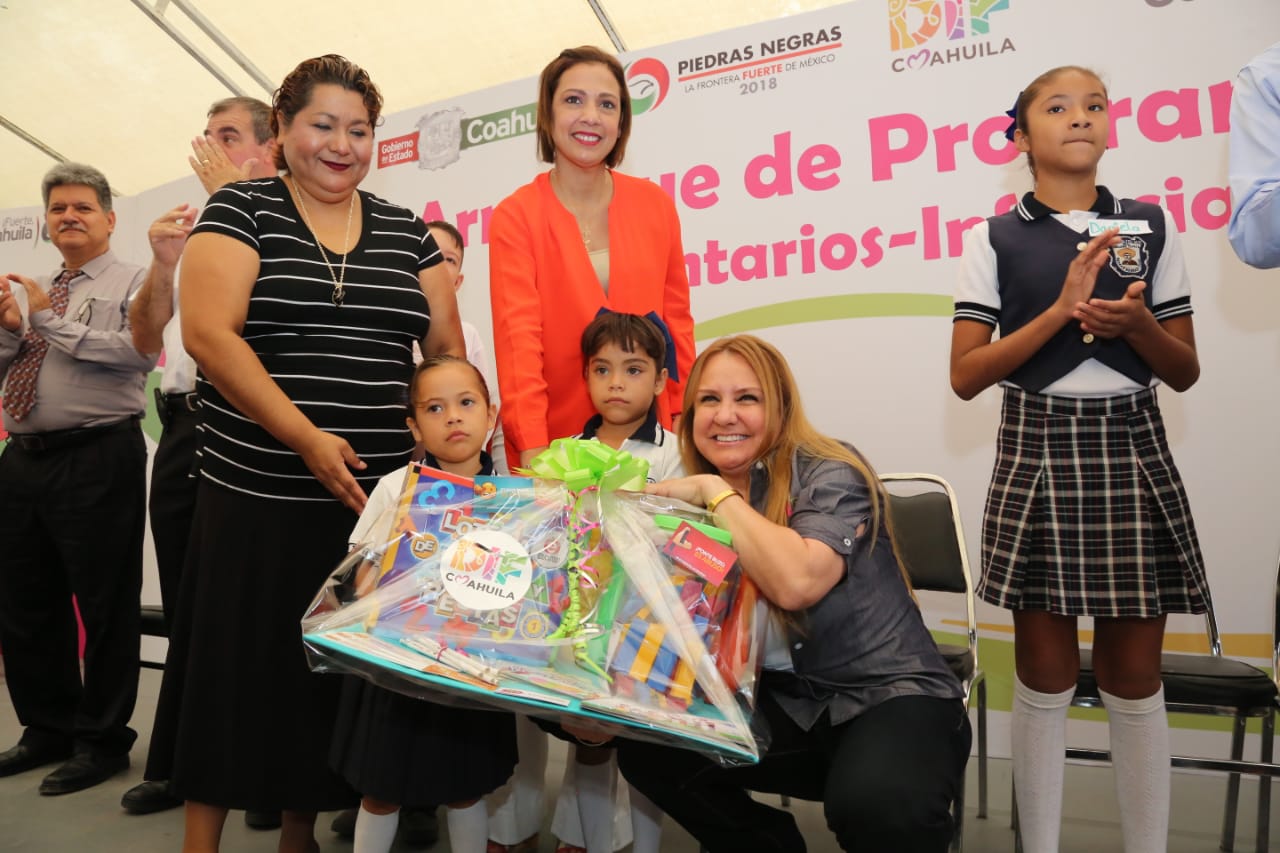Piedras Negras.- Proporcionar alimentación complementaria a las niñas y niños de centros escolares de zonas rurales y áreas periféricas, es objetivo de los programas Alimentarios-Infancia puestos en marcha por la Presidenta Honoraria del DIF Coahuila, Marcela Gorgón, en la Escuela Primaria Emiliano Zapata, en Piedras Negras.