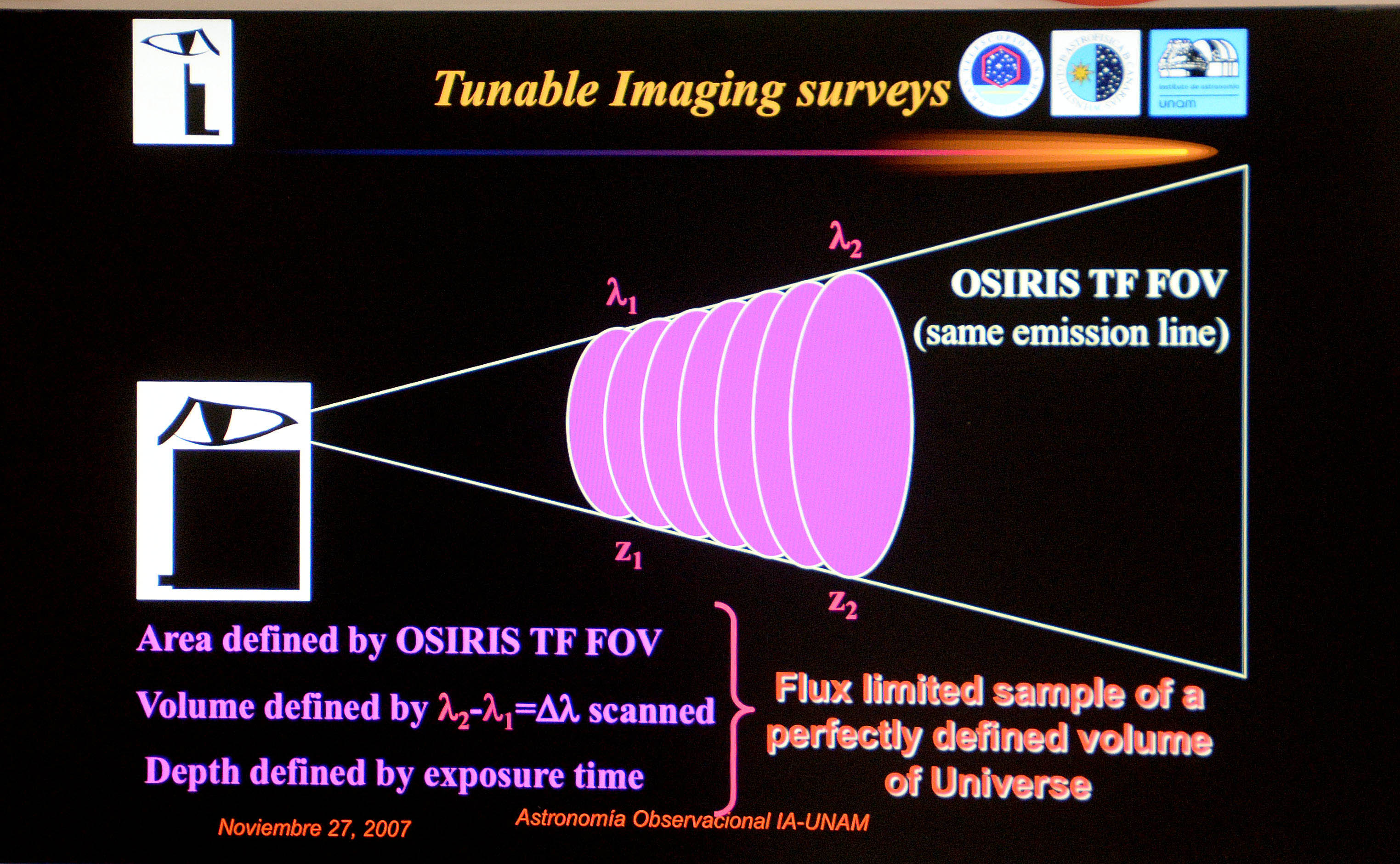 González explicó que OSIRIS puede ver lo que otros instrumentos no, porque fue diseñado específicamente para utilizar una tecnología llamada filtros sintonizables, que pueden ser de distinto ancho y se pueden ajustar en distintas longitudes de onda. Esto brinda la oportunidad única de detectar objetos en emisión (de gas ionizado) sin ningún sesgo, en un volumen bien definido del Universo.
