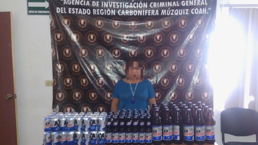 En la Región Carbonífera, los agentes de esta FGE detuvieron en Múzquiz a Seydy (N) de 20 años, por el delito de venta de bebidas embriagantes fuera de horario, asimismo se le aseguraron alrededor de 100 botellas de cerveza.