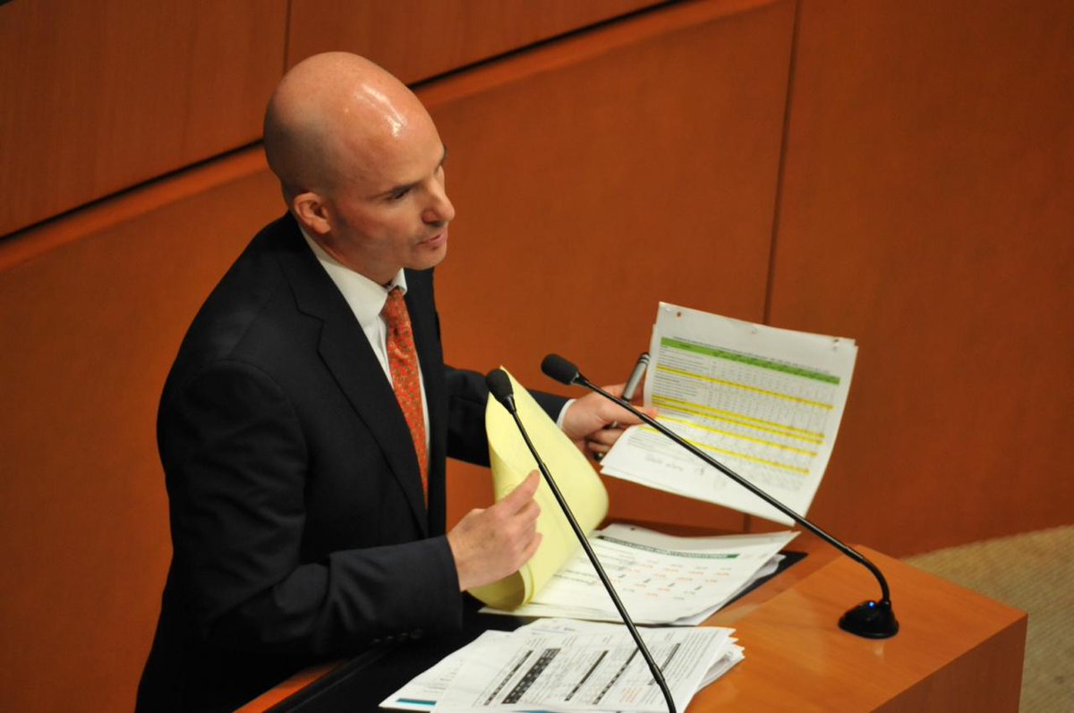 En su tercera intervención durante la comparecencia, apuntó que la deuda externa asciende a 200 mil millones de dólares, mientras que la deuda interna asciende a 5.6 millones de millones de pesos.