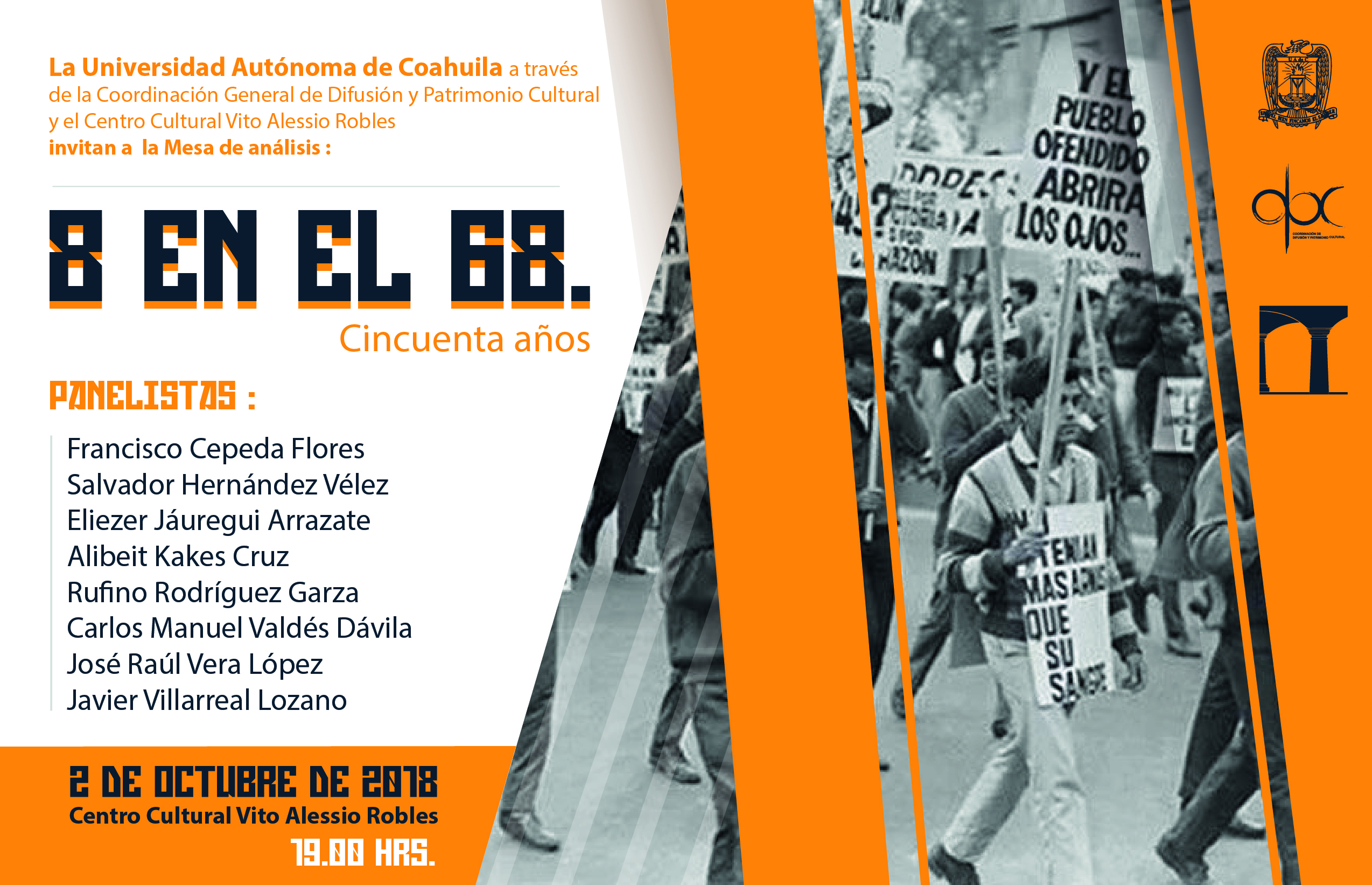 Comprometida con la memoria social del país, la Universidad Autónoma de Coahuila conmemorará el 50 aniversario del Movimiento Estudiantil de 1968 con un amplio programa artístico-cultural, con la finalidad de remembrar y concientizar sobre el hecho que dejó una honda herida en la colectividad mexicana.