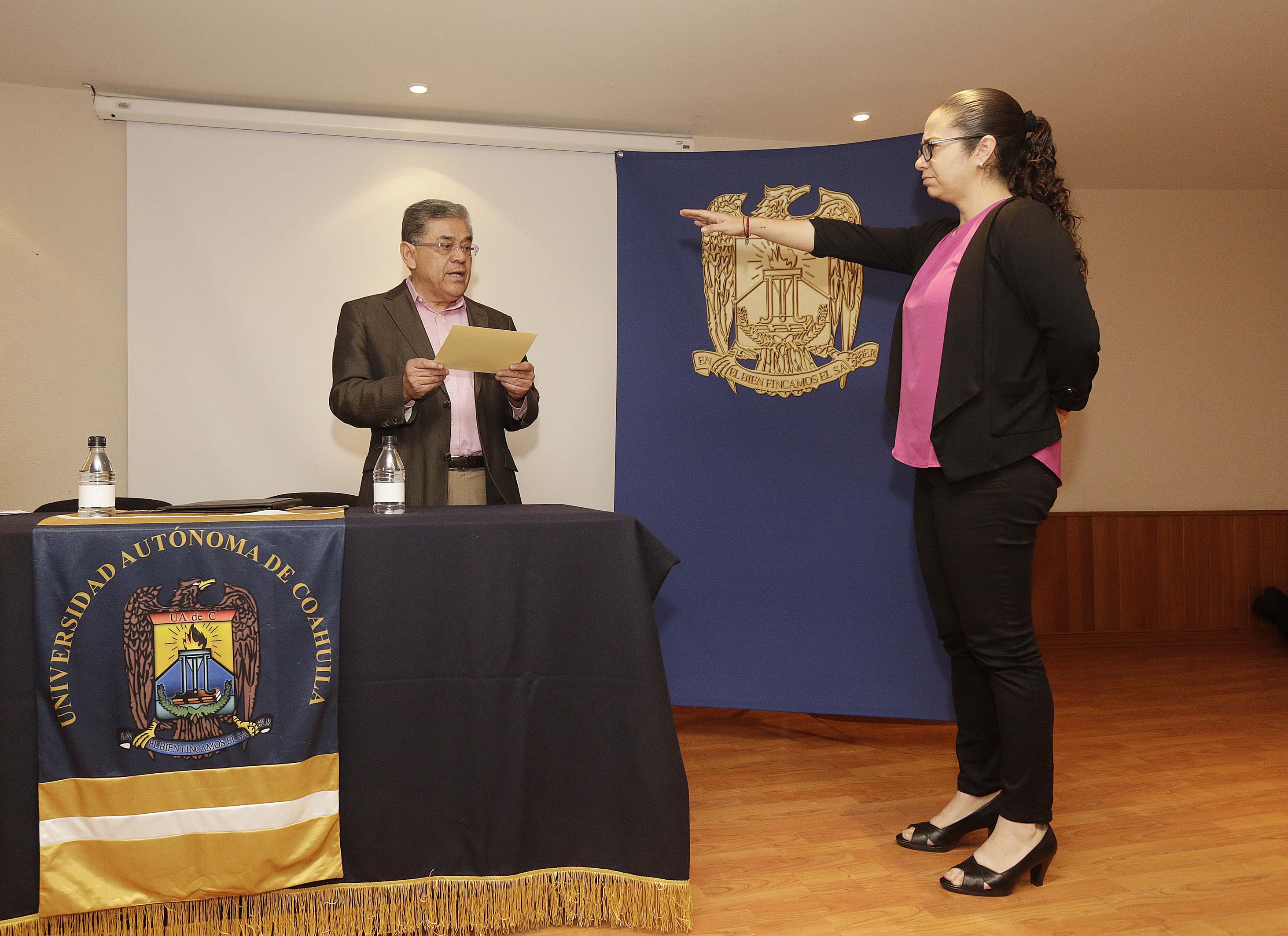 El rector de la Universidad Autónoma de Coahuila, Salvador Hernández Vélez, tomó protesta como presidente de la Academia de Directores de la Unidad Saltillo, a la directora de la Facultad de Psicología Karla Patricia Valdés García para el periodo 2018-2019.