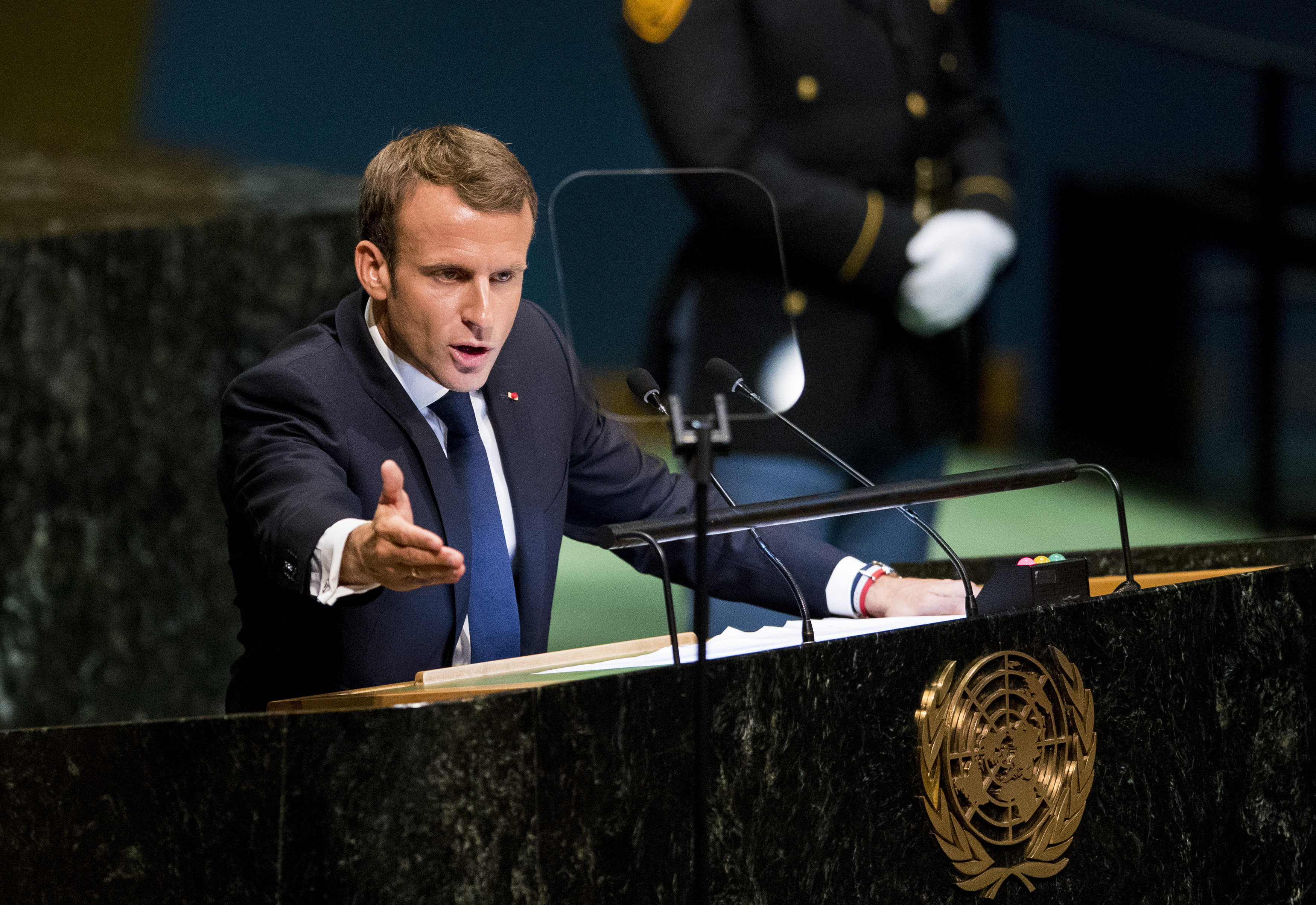 «De ninguna manera cederé el principio de la soberanía de los pueblos a los nacionalistas ni a aquellos en la comunidad internacional que abogan por replegarse hacia adentro, que quieren usar la soberanía de los pueblos para atacar la universalidad de nuestros valores», dijo Macron poco después de que Trump hablara.