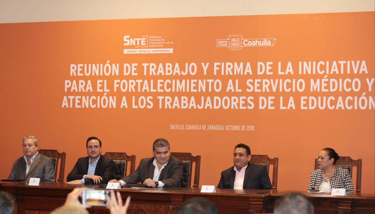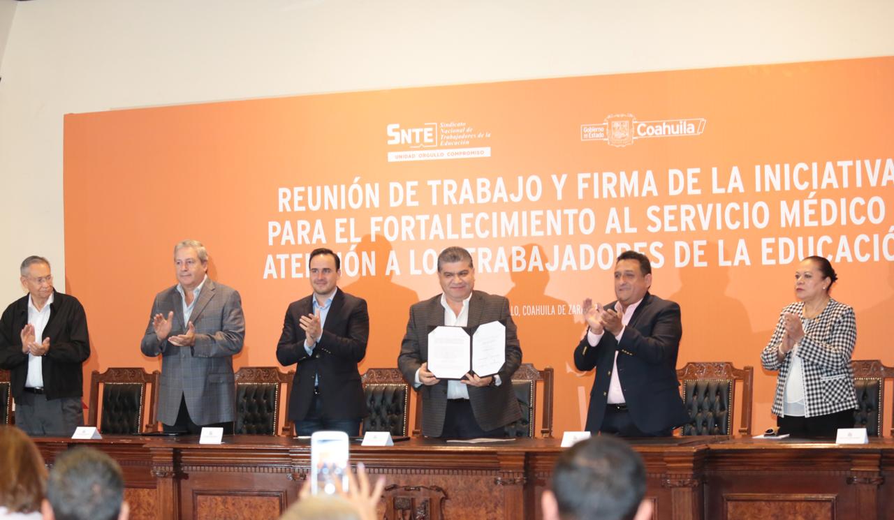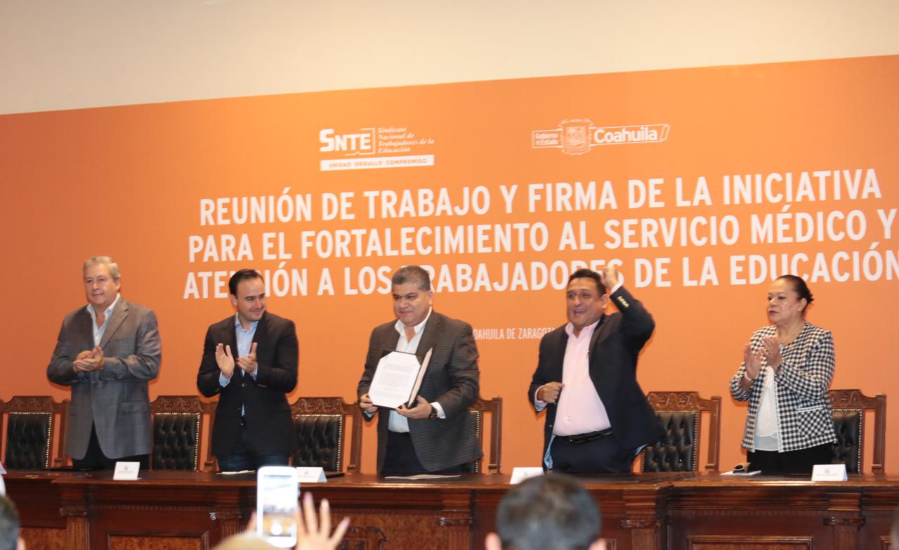 Lo anterior durante la firma de la iniciativa para una nueva Ley del Servicio Médico para los Trabajadores de la Educación del Estado de Coahuila de Zaragoza, lo que es resultado de un trabajo intenso con las representaciones magisteriales que se ha realizado desde el inicio de su administración.