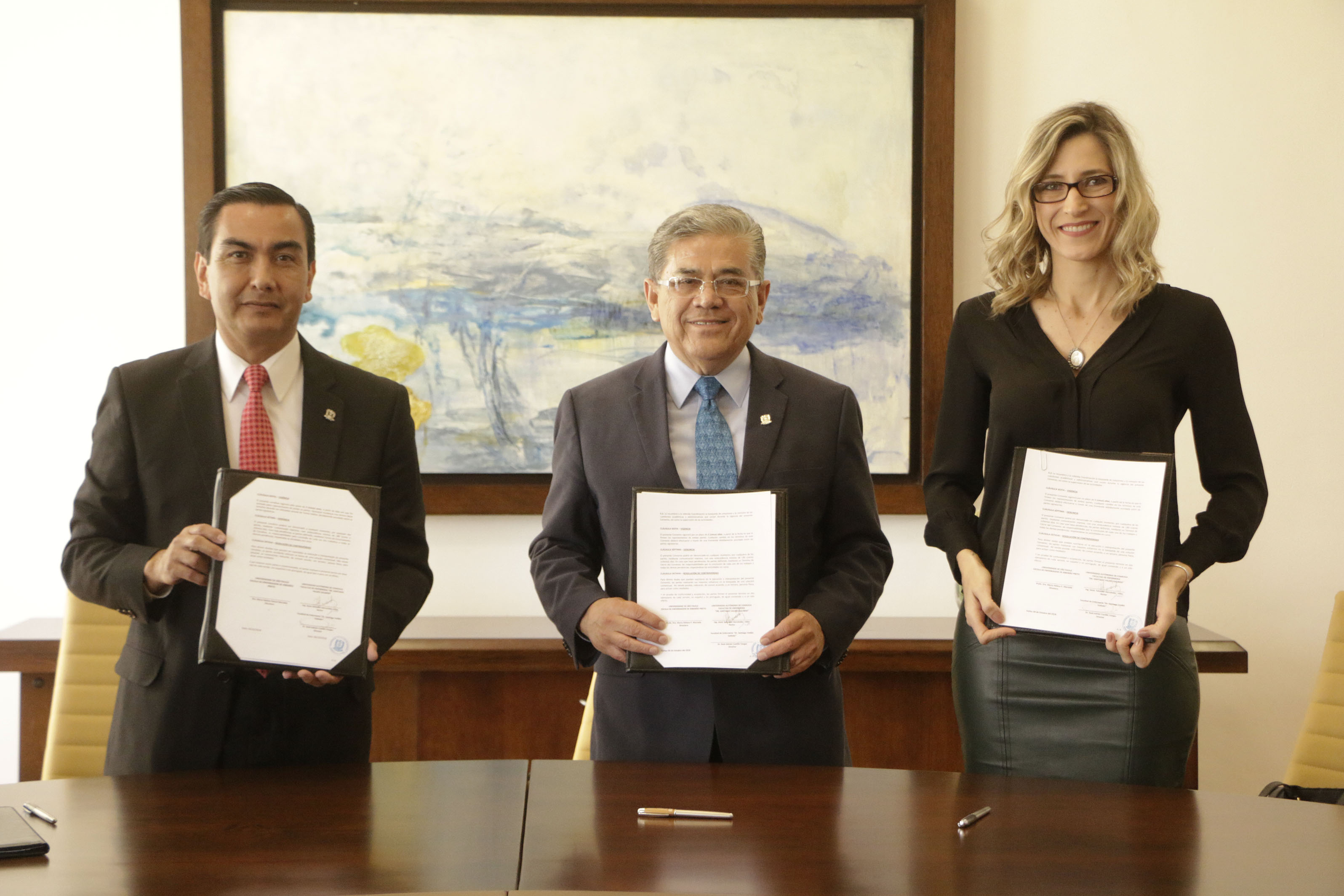 El rector de la máxima casa de estudios, Salvador Hernández Vélez, agradeció a la Universidad de Sao Paulo Brasil y a su representante la Doctora Elaine Cristina da Silva Gerardi-Donato.