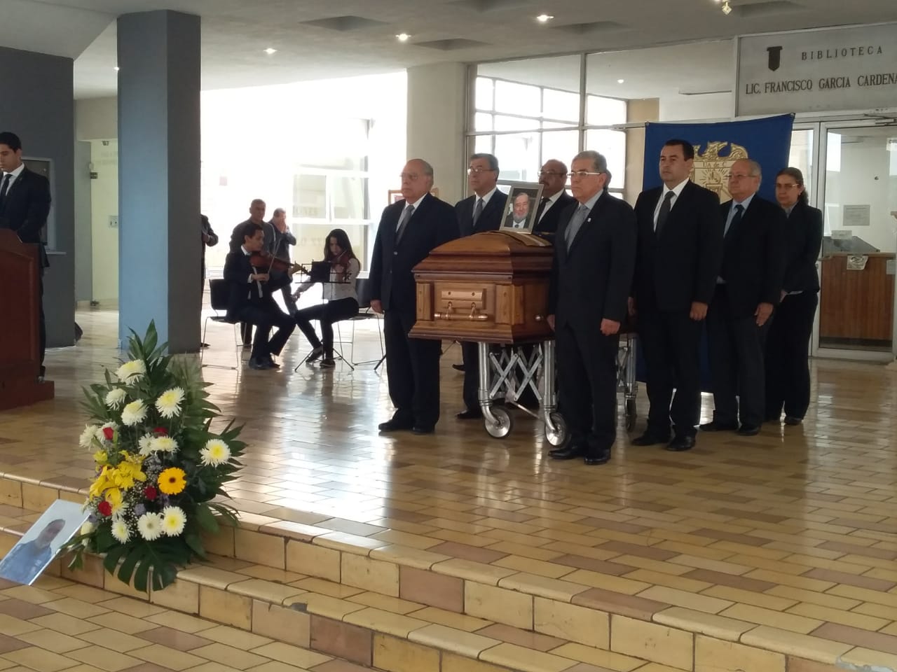 Posteriormente, en la Facultad de Jurisprudencia de la UAdeC, se efectuó una ceremonia de cuerpo presente, donde participó el personal de la facultad, así como alumnos, ex directores e invitados especiales quienes, durante un par de horas, compartieron experiencias y enseñanzas que el licenciado Flores Rodríguez dejó en trayectoria, en este plantel educativo.