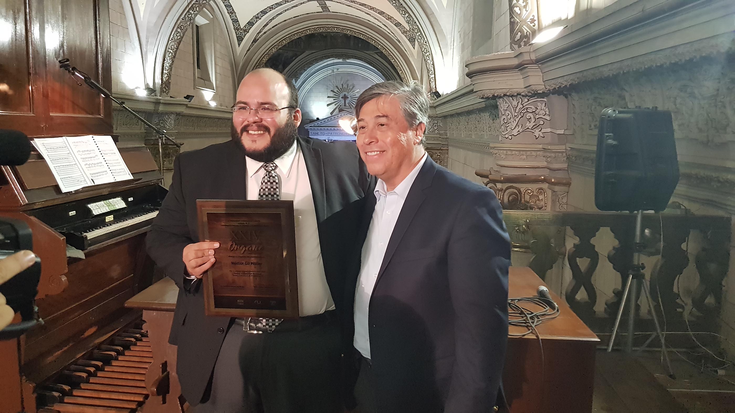 Gil Müller recibió el aplauso del público que disfrutó las interpretaciones de un variado programa musical que incluyó temas de compositores europeos, se le entregó una placa de reconocimiento por su participación en el festival.