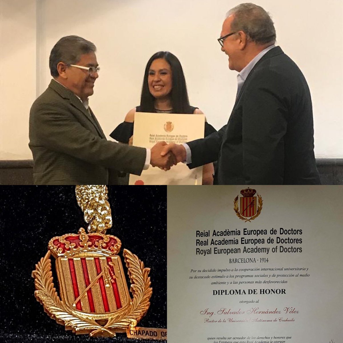 Salvador Hernández Velez, rector de la Universidad Autónoma de Coahuila (UA de C), recibió una medalla y diploma de honor por “su decidido impulso a la cooperación internacional universitaria y su destacado estímulo a los programas sociales y de protección el medio ambiente y a las personas más desfavorecidas”.