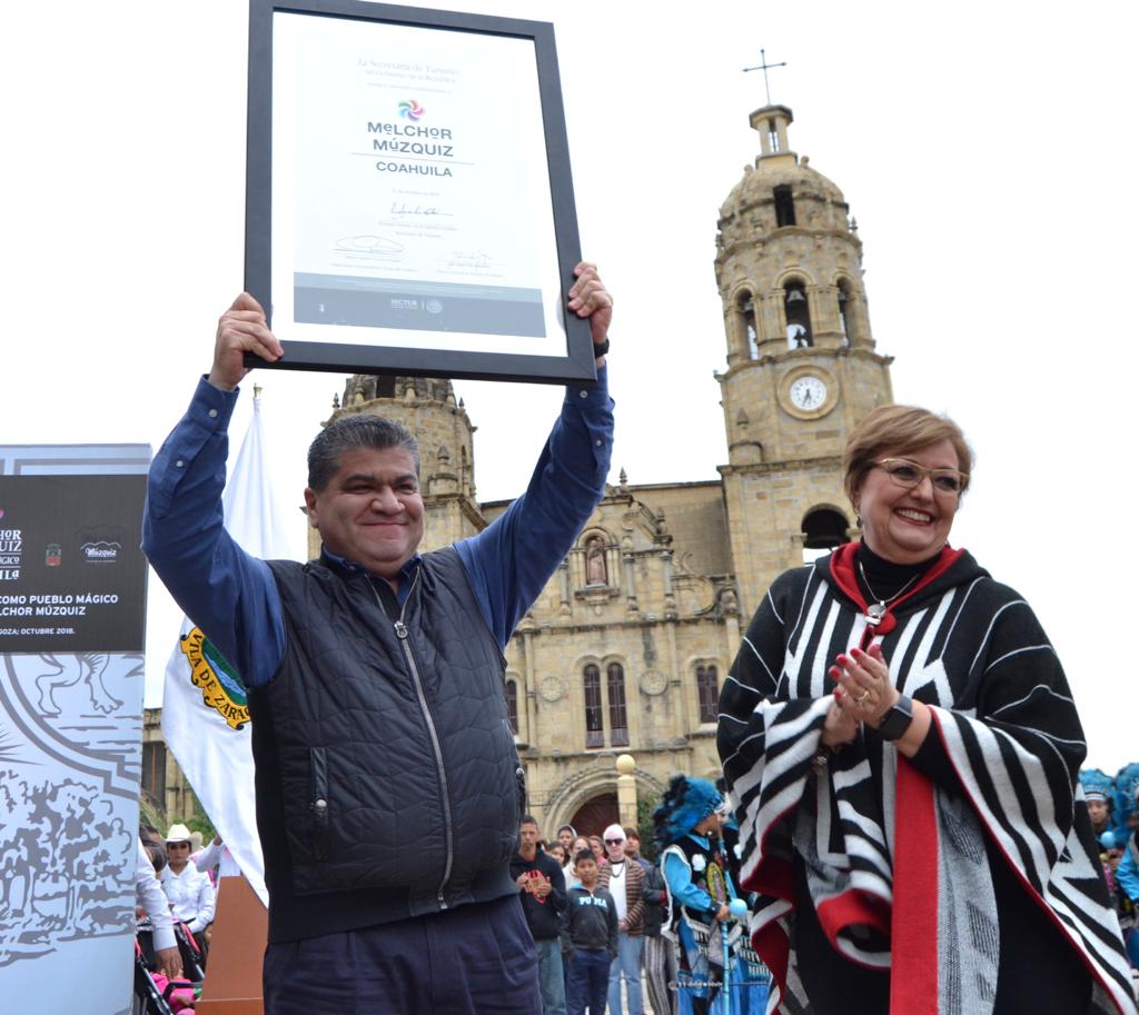 “A partir de hoy Múzquiz es Pueblo Mágico” expresó Miguel Ángel Riquelme Solís y destacó la suma de esfuerzos para alcanzar este distintivo que coloca al municipio ante los ojos del mundo y debe ser promovido por su aportación a la cultura nacional; señaló que se tiene un gran reto por delante, lo que permitirá generar una derrama económica importante para la región carbonífera.