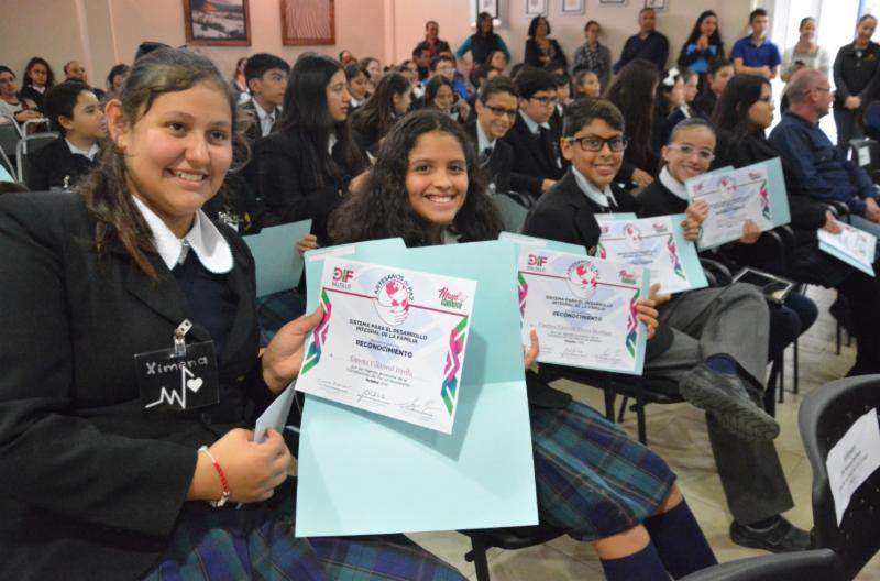 Al finalizar, la señora Liliana Salinas Valdés, acompañada del director del Centro de Medios Alternos de Solución de Controversias, Santiago Quiroz, junto con Ricardo Berlanga y Gladys García, directores del colegio, encabezó, la entrega de reconocimientos a los alumnos como “Artesanos de Paz”, mismos que se otorgan por parte del DIF Saltillo a ciudadanos que promueven la paz en su entorno.