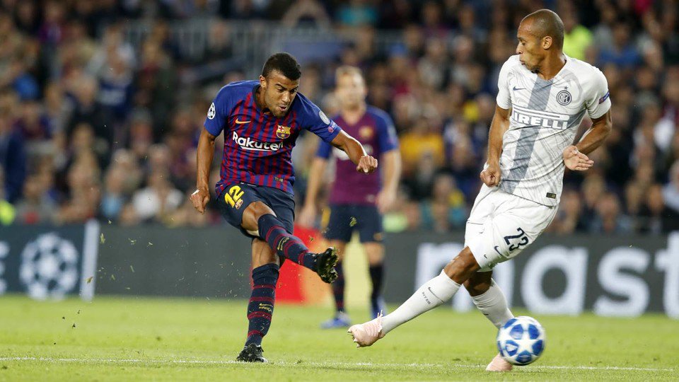 Con goles del brasileño Rafinha y el español Jordi Alba, Barcelona se impuso por 2-0 a Internazionale de Milán de Italia en juego disputado en el estadio Camp Nou de Barcelona y correspondiente a la jornada tres de la liga de Campeones de Europa.