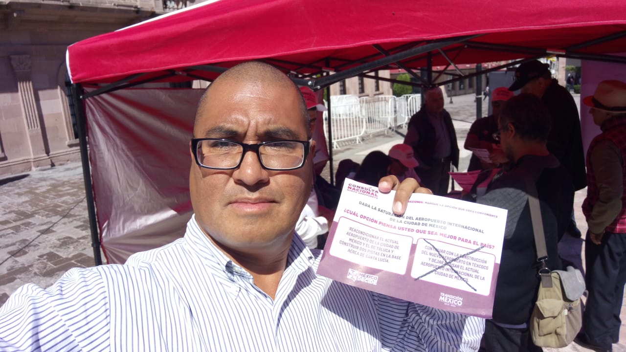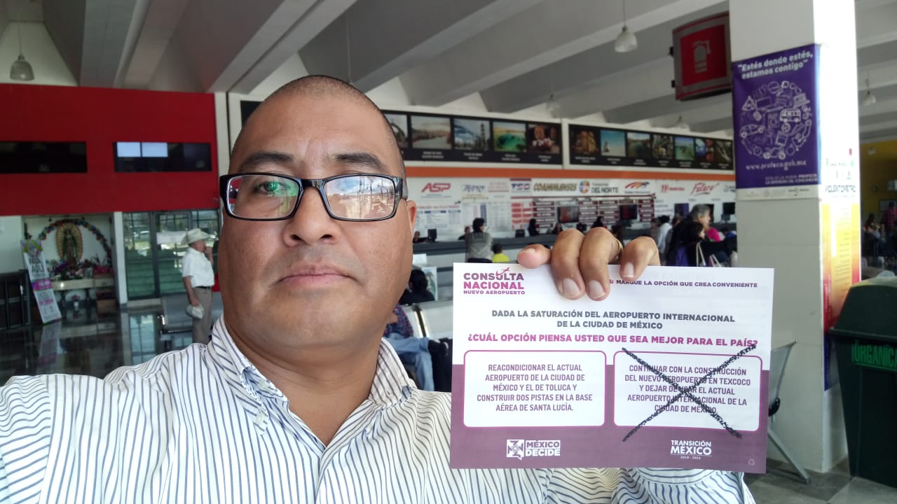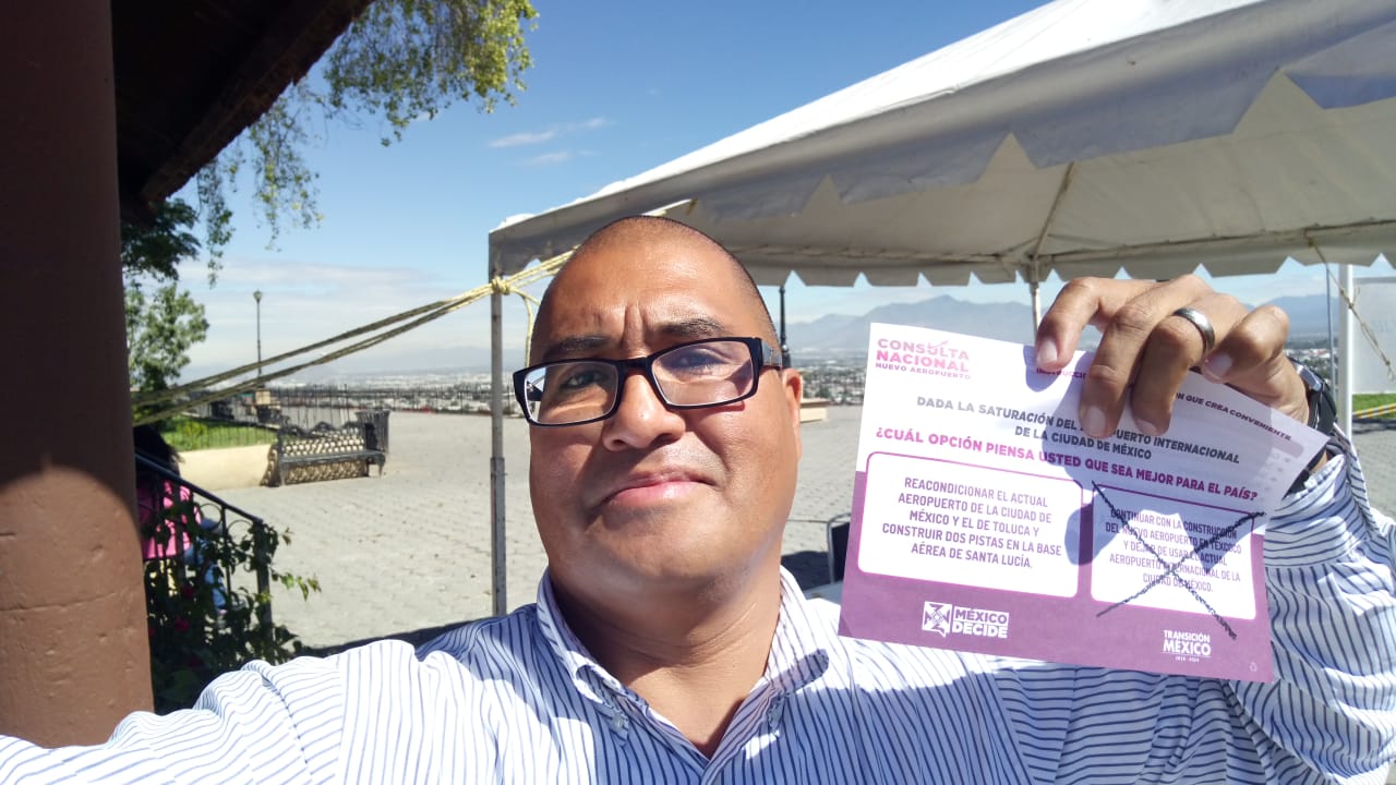 Tras revisarse la identidad y el número de la credencial – que no fue agregado tampoco en la App que se dispuso también como filtro para comprobar que no se había votado en otra casilla – únicamente se ofreció la boleta para elegir alguna de las dos opciones impresas, que eran las de continuar con la construcción del nuevo aeropuerto de Texcoco, o la de reacondicionar el actual Aeropuerto de la Ciudad de México junto con el de Toluca, además de la construcción de otras dos pistas en la Base Aérea de Santa Lucía.