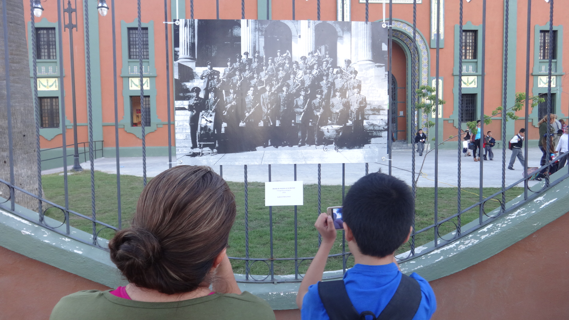 La Banda de Música del Estado de Coahuila toca piezas de bienvenida para el público que comienza tomar sus lugares. Son poco más de las 6:00 de la tarde de un jueves 25 de octubre. En las rejas de la Escuela Coahuila, símbolo de uno de los pilares de educación básica de la entidad, se encuentra una serie de fotografías en blanco y negro, obra del reconocido fotógrafo Gabriel Berúmen, quien en marzo de este año partiera físicamente de este mundo.