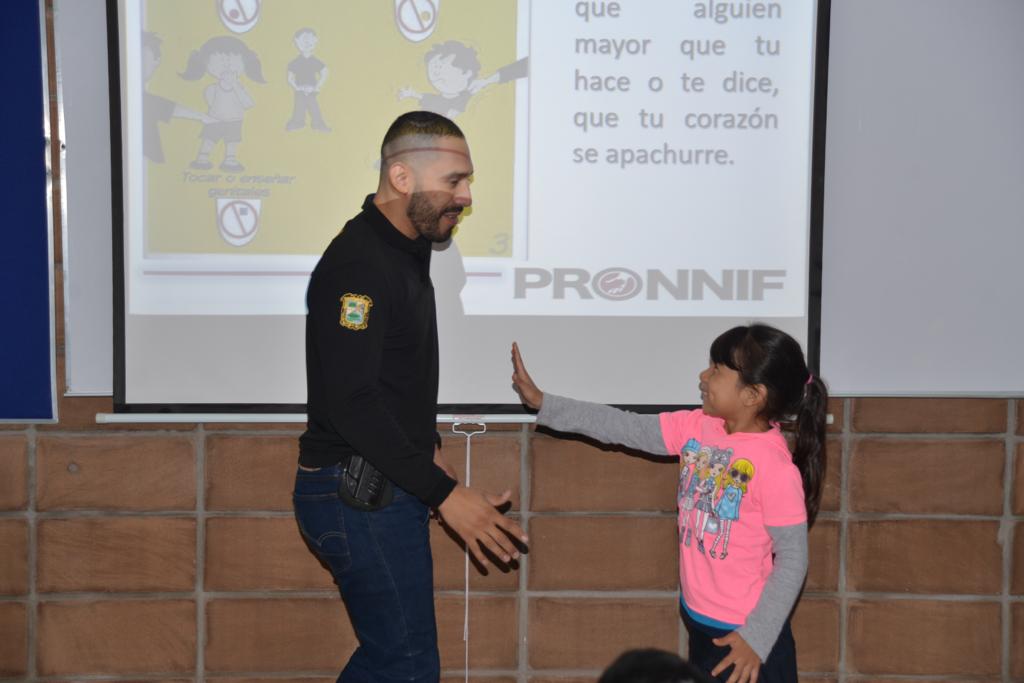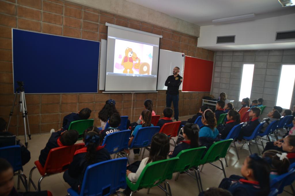 Hasta el Instituto Domus, ubicado al oriente de Torreón, acudió el agente investigador de la PRONNIF Javier de Santiago Félix, para llevar este mensaje de protección aproximadamente a un centenar de niñas y niños de primer y segundo grado.
