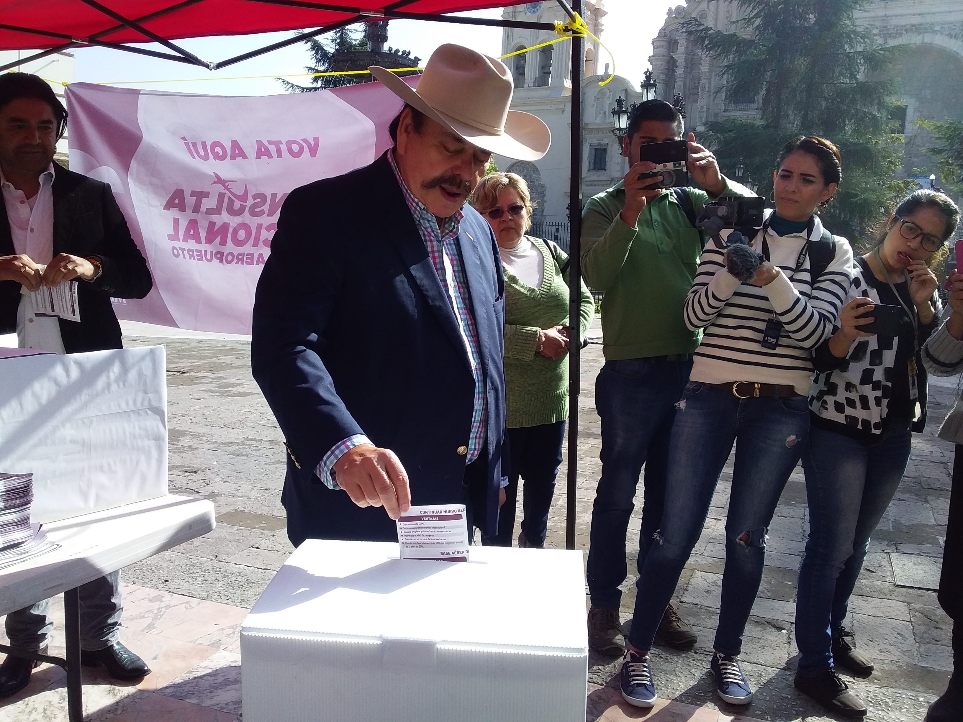 Este sábado, en Plaza de Armas, el senador Armando Guadiana Tijerina, emitió su voto para la consulta nacional sobre el Nuevo Aeropuerto Internacional de la Ciudad de México (NAIM), donde expresó su postura a favor de su construcción.