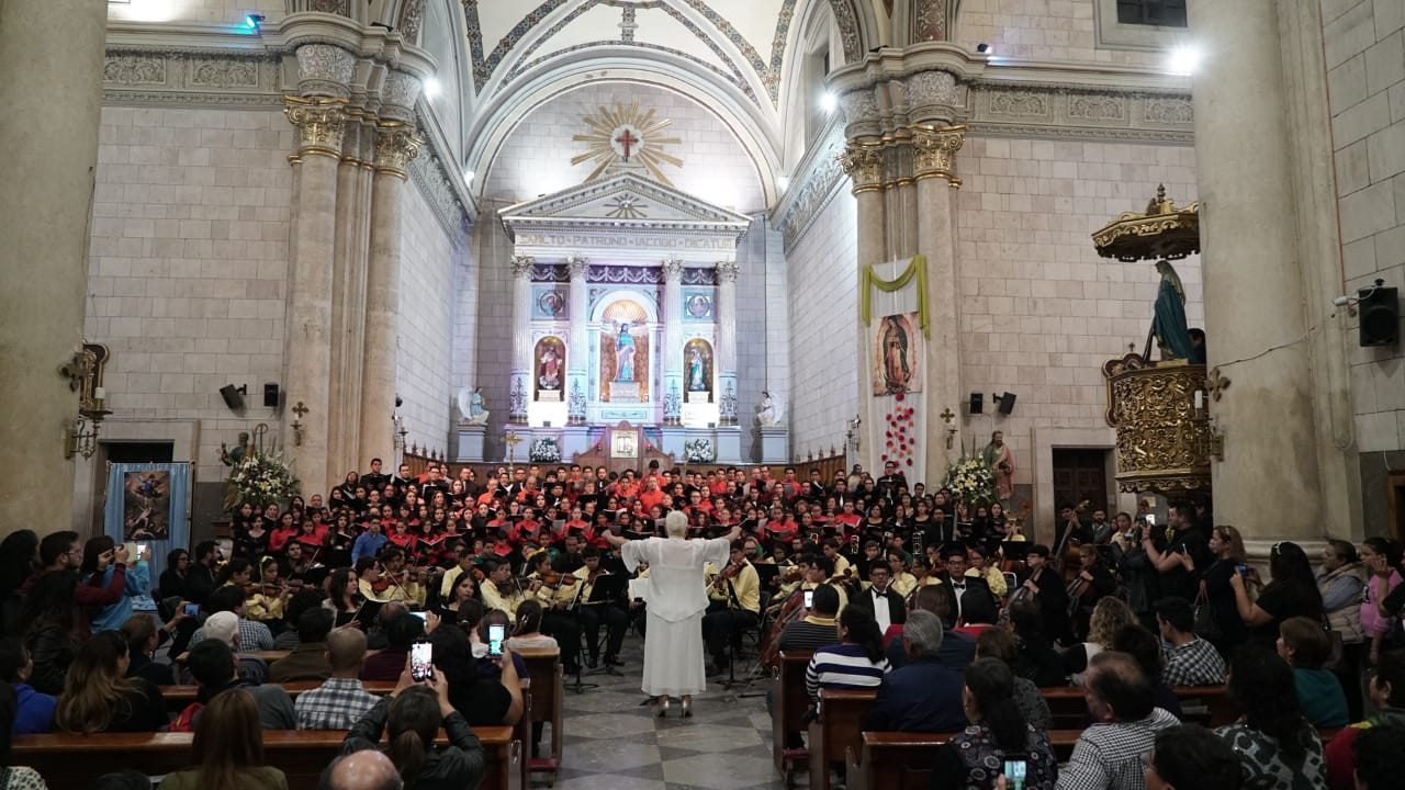 Bajo la dirección artística de José Ángel Sánchez Parra, la Orquesta Sinfónica Esperanza Azteca Coahuila se presentó en la Catedral de Santiago de la capital coahuilense, inmejorable marco para este espectáculo.