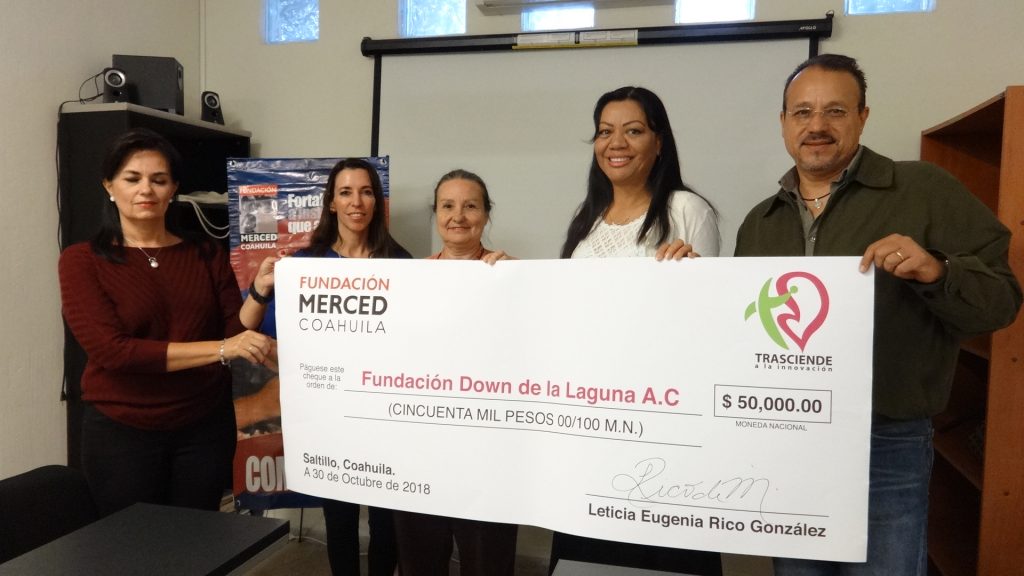 Este martes, la mesa directiva de la Fundación Merced Coahuila, hizo entrega del «Premio Trasciende a la Innovación 2018», dirigido a organizaciones con impacto social, a la Fundación Down de La Laguna, cuya labor altruista apoya a personas con la alteración genética de Síndrome de Down (SD).